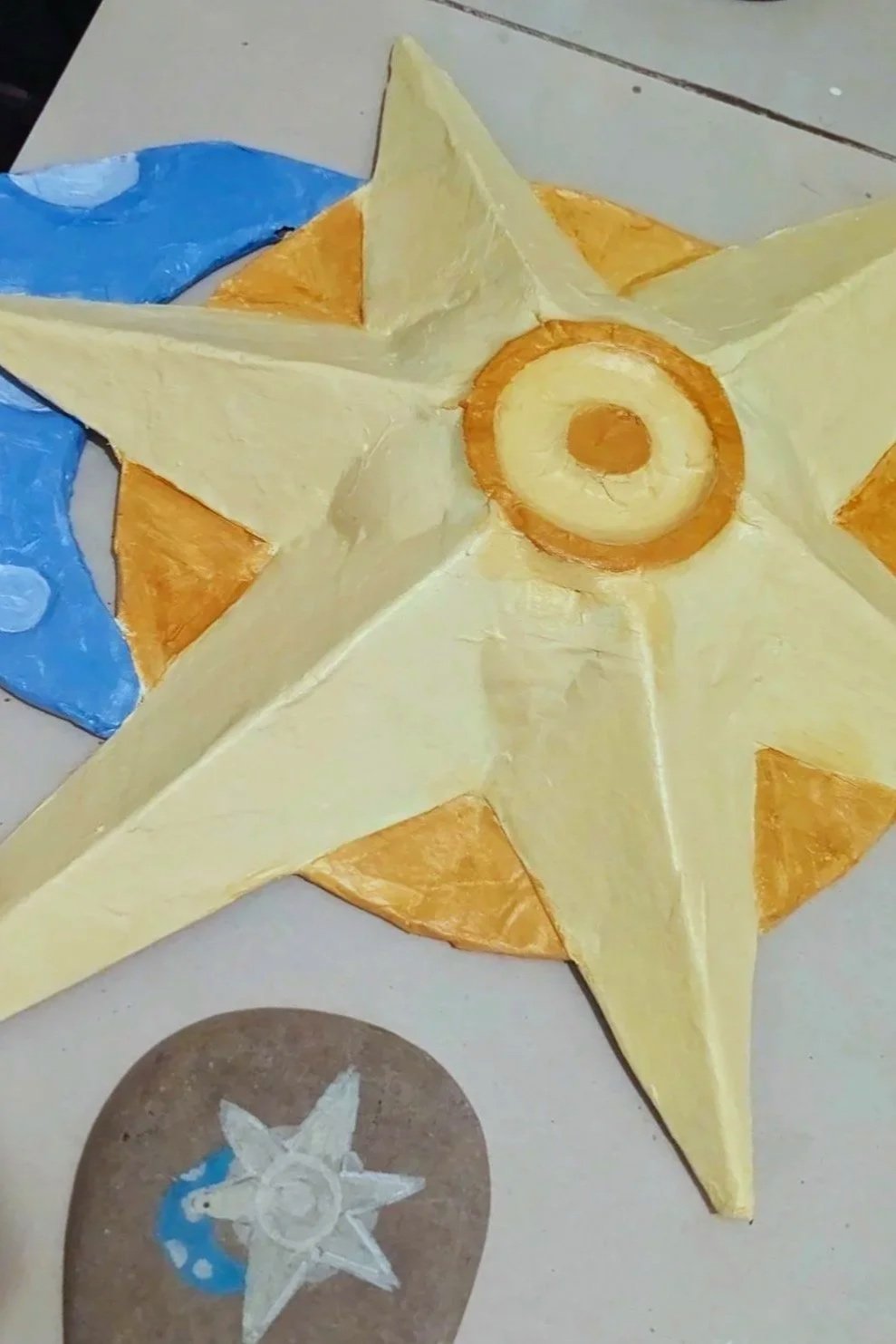 A sculptural paper mache wall hanging for her meditation room