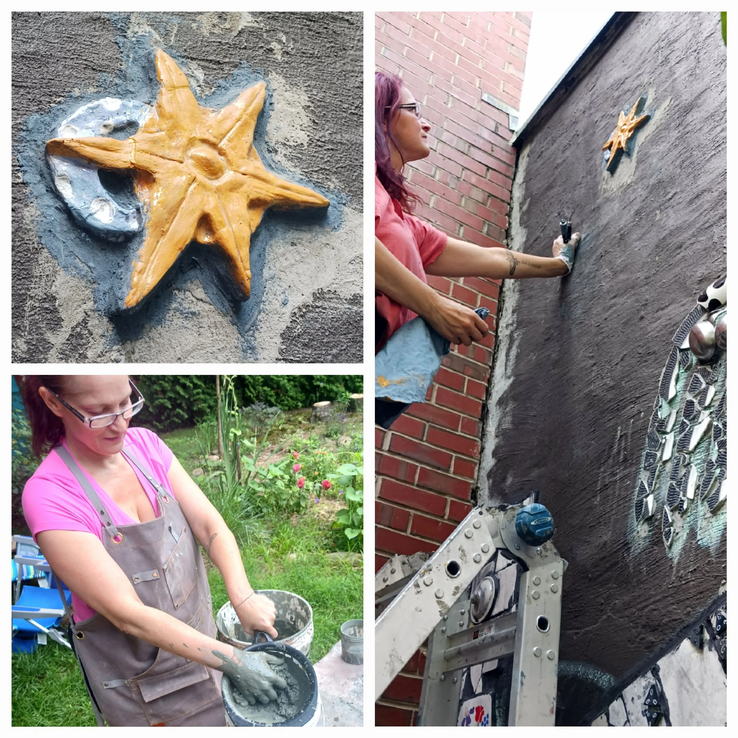A clay tile incorporated into a mosaic mural in our town park